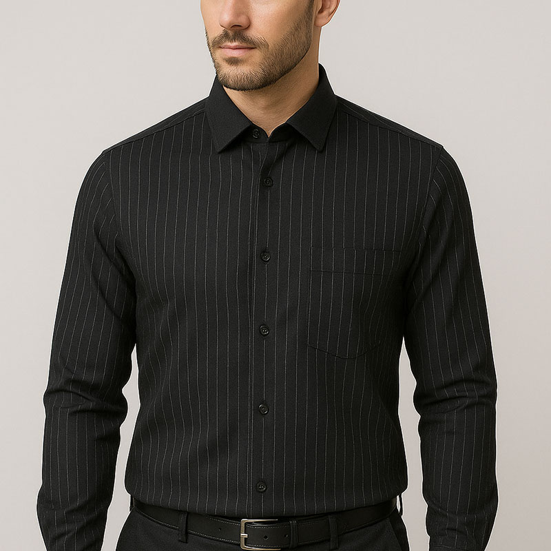 پیراهن مردانه راهراه مشکی S&T کد BS62 | BLACK SUN